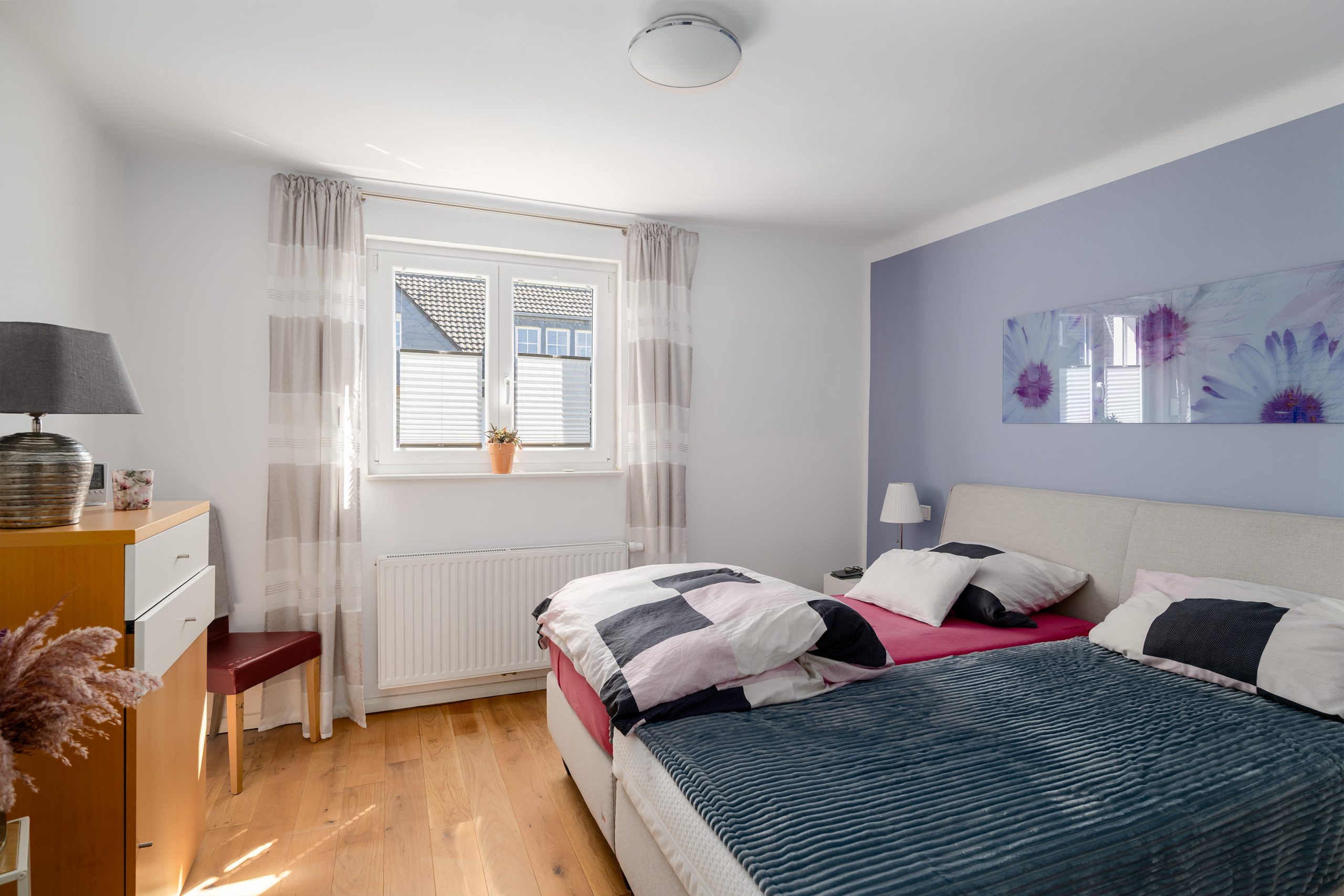 Das Haus bietet aktuell 3 bis 4 flexibel nutzbare Zimmer. Ein großzügiges Schlafzimmer mit Ankleidezimmer im Erdgeschoss kann bei Bedarf in zwei Räume geteilt werden, sodass zusätzlich ein Büro oder Kinderzimmer entsteht. Im Dachgeschoss stehen zwei weitere kleine Zimmer zur Verfügung, mit zusätzlichem Ausbaupotenzial durch eine mögliche Gaube.